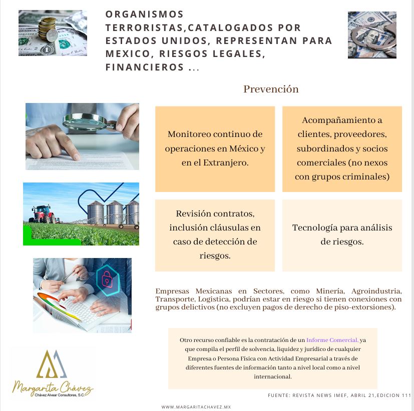 ORGANISMOSTERRORISTAS,CATALOGADOS PORESTADOS UNIDOS, REPRESENTAN PARAMEXICO, RIESGOS LEGALES,FINANCIEROS